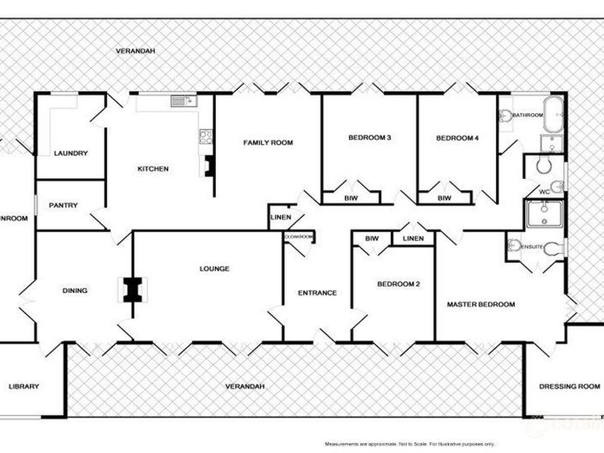 A grand central entrance leads to the formal lounge, where an open fireplace provides a stunning focal point, and through to the formal dining room with its own fireplace. The luxurious master suite includes a private dressing room and ensuite, while three additional oversized bedrooms feature built-in wardrobes and French doors opening onto the front or rear verandahs.